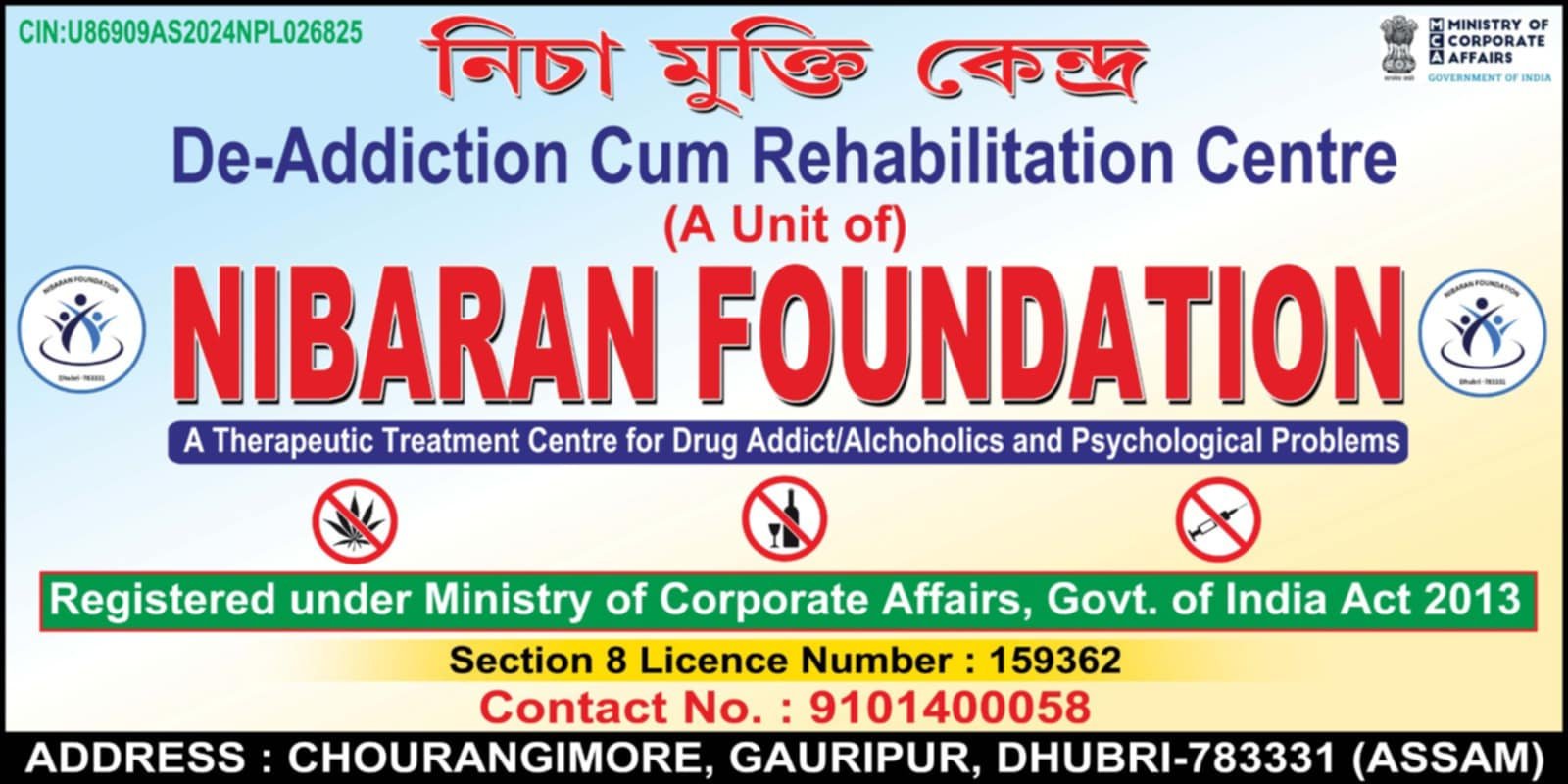 Nibaran Foundation is one of a trusted Rehabilitation Centre In Dhubri, We Provide A therapeutic drug or alcohol addiction treatment / relaps prevention /aftercare service